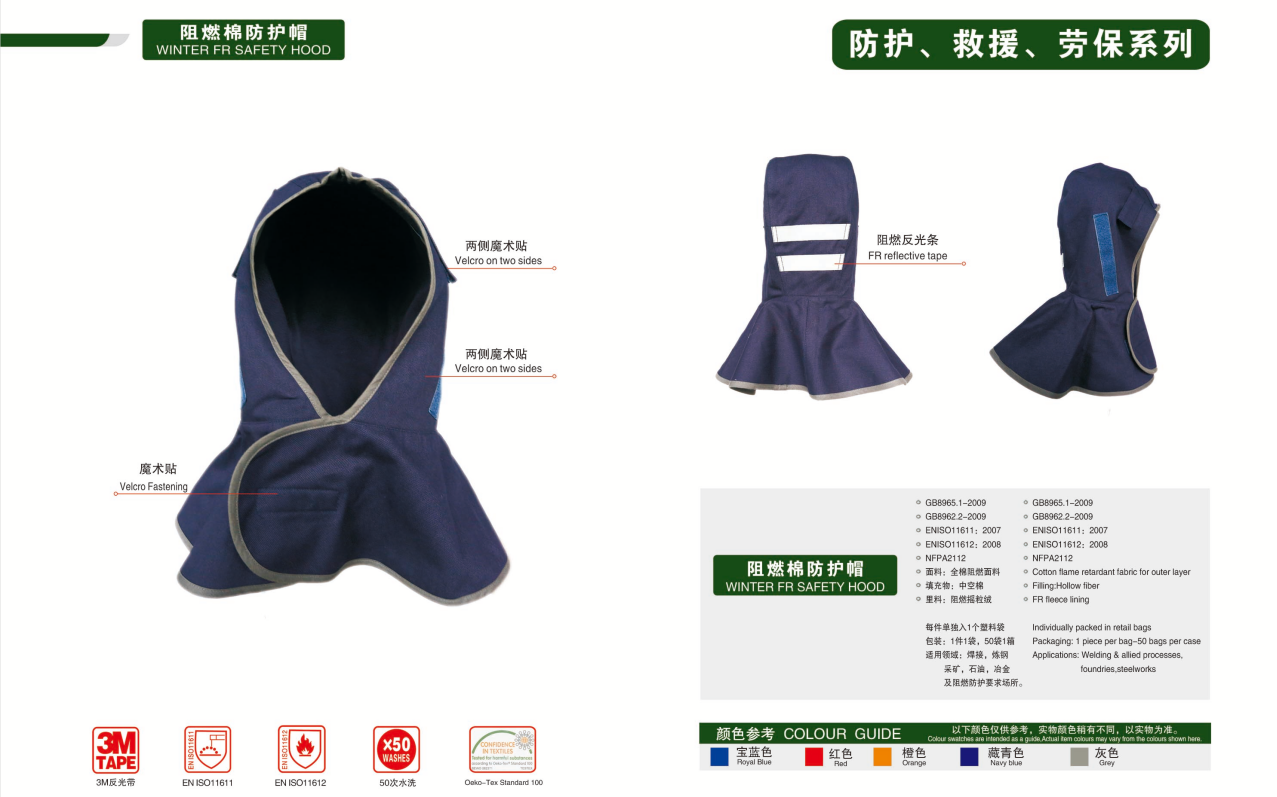 【材料與款式】:采用全棉阻燃面料,填充物:中空棉,里料:阻燃搖粒絨,水洗50次仍符合國家和國際阻燃標(biāo)準(zhǔn)。 【適用領(lǐng)域】:焊接,煉鋼,采礦,石油,冶金及阻燃防護(hù)要求場所。 【定制要求】:面料規(guī)格、顏色、款式、尺碼可根據(jù)用戶需要定制。 【執(zhí)行標(biāo)準(zhǔn)】: GB8965.1-2009 GB8962.2-2009 ENISO11611:2007 ENISO11612:2008 NFPA2112